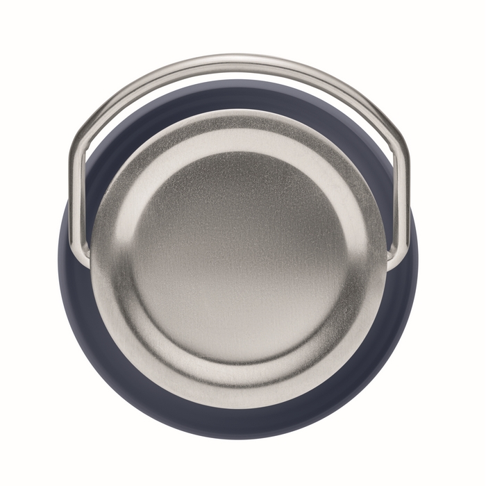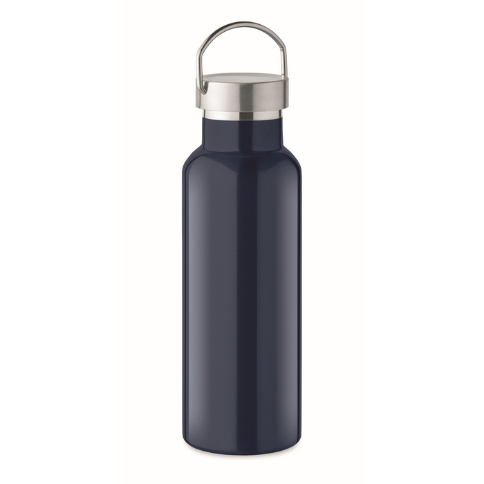 Nachhaltiger Trinkspass mit doppelwandiger Isolierflasche in der Farbe dunkelblau aus recyceltem Edelstahl (90 % recycelter Edelstahl und 10 % Edelstahl). Dank ihres Materials bietet die Trinkflasche nicht nur eine nachhaltige Alternative zu Einwegflaschen, sondern reduziert zudem den Bedarf an neuen Rohstoffen. Die spülmaschinenfeste Flasche bietet ein Fassungsvermögen von 500 ml und überzeugt nicht zuletzt mit ihrem stabilen Schraubverschluss mit Henkel. Durch ihre kompakte Größe und das leichte Gewicht ist sie zudem einfach zu tragen und eignet sich ideal als Begleiter für unterwegs - ganz egal ob bei der Arbeit oder in der Freizeit beim Sport.
