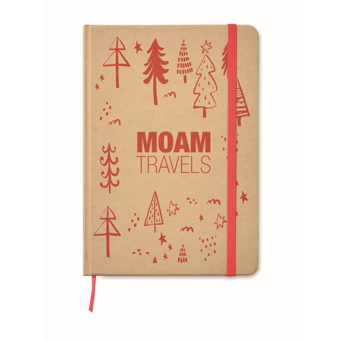 p>DIN A5 Merkbuch in der Farbe rot mit Hard Cover aus recyceltem Karton. 80 Blatt (160 Seiten) liniertes Papier. Elastisches Verschlussband und Lesebändchen in passender Farbe.